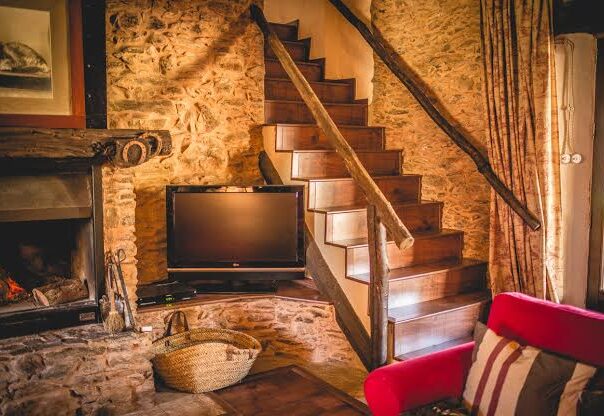 El amplio salón de 50 m2 es de destacado estilo rústico, con paredes de piedra, vigas de castaño, suelo de madera de roble, cómodo mobiliario y una gran chimenea que brinda a los inquilinos el escenario adecuado para disfrutar con la familia o amigos de unas jornadas inolvidables. Dispone de biblioteca, WIFI 4G gratis, AIRE ACONDICIONADO, TV Led 42″, Movistar+ Premium extra, Juegos de mesa….